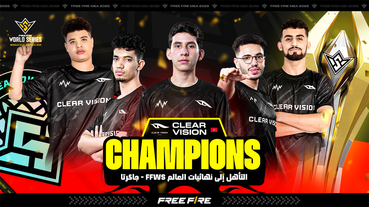 توج فريق الرياضات الالكترونية المغربي كلير فيجن (Clear Vision) بطلا لـ سلسلة فري فاير العالمية (FFWS) لمنطقة الشرق الاوسط وافريقيا 2025. ويمنح هذا الفوز الحاسم للفريق بطاقة العبور الى الساحة العالمية في جاكرتا لتمثيل المنطقة في النهائيات العالمية لـ FFWS 2025 في شهر نونبر من هذا العام.